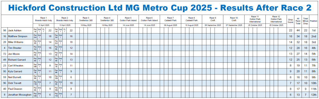 Post Oulton Park Island Standings